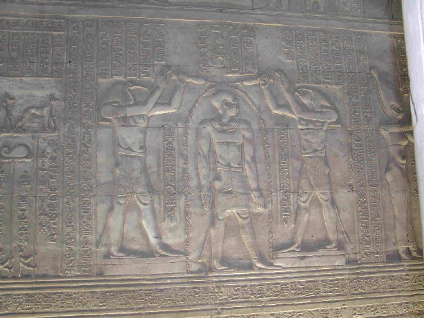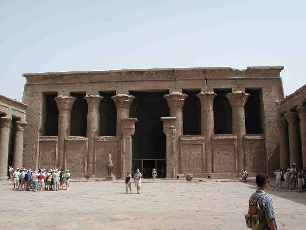 Obwohl er sich für uns Laien fast nicht von den "alten" Tempeln unterscheidet, ist er doch einer der Neuesten und wurde von den Ptolemäern erbaut. Gewidmet dem Gott Horus |