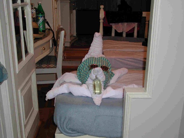 | Danach haben wir schwer aufgepasst, was wir in der Kabine offen herum liegen ließen...und es blieb nicht die letzte Aktion unseres Steward. | ![]() |