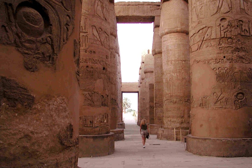 Die riesige und imposante Säulenhalle des Karnak-Tempels |